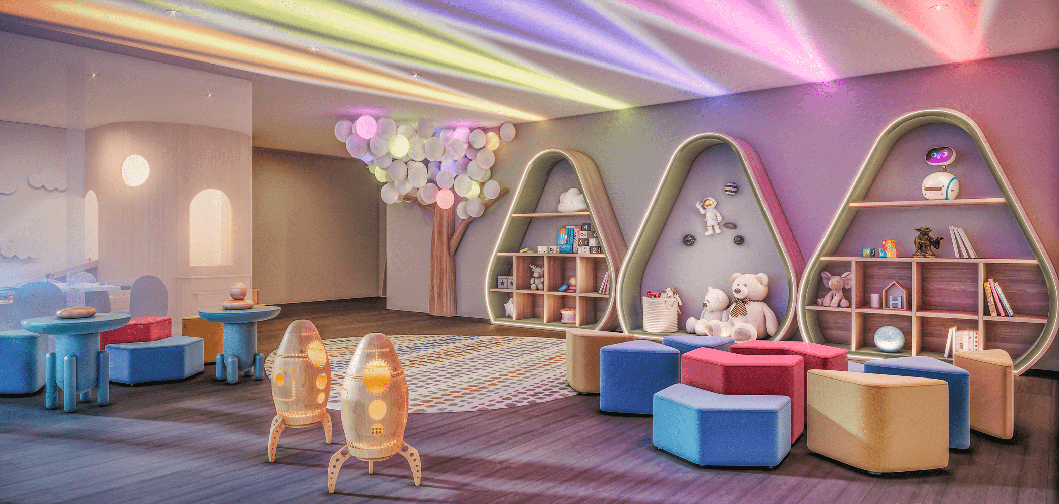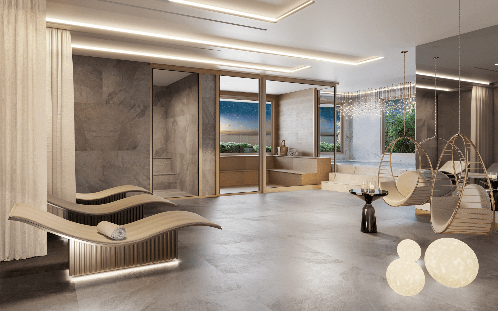 - Espace de loisirs au 4e étage, comprenant un Gourmet Lounge, un espace pour enfants, une aire de jeux et un terrain de beach tennis